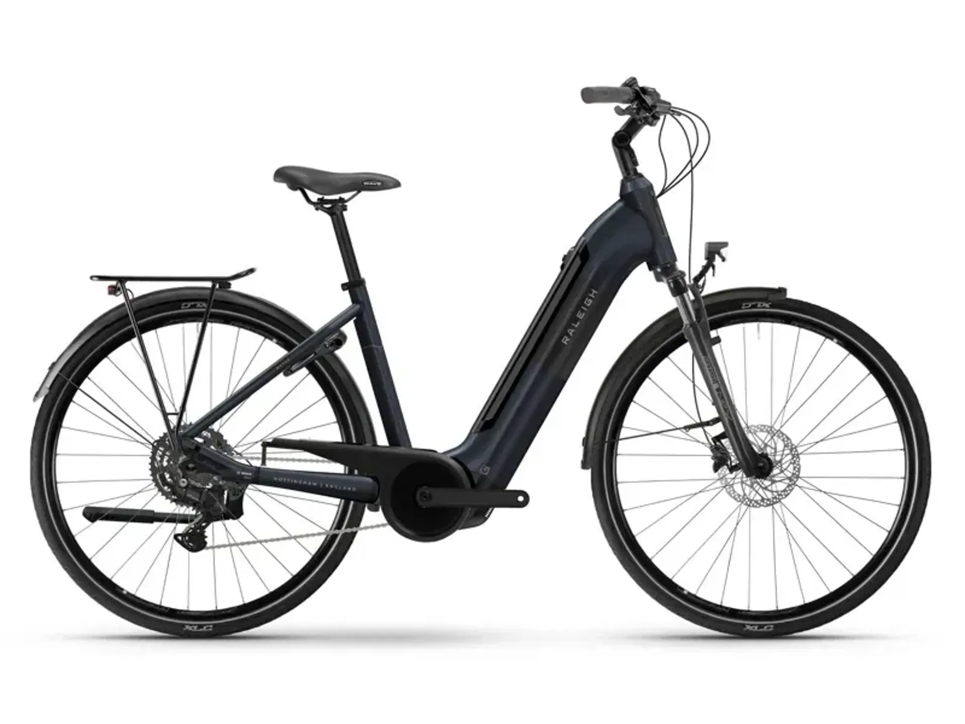Raleigh Motus Low Step Derailleur Gear E-Hybrid Bike in Night Blue